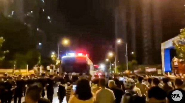 从现场人士拍摄的视频可见,有民众被抬到大型巴士警车时,被人殴打头部,该名男子还击,其后双方在车上互殴:“打起来了,国保打人啊。”不少业主愤而走出屋苑外的大路上,一度包围警车,警察要手拖手护送警方的巴士离开。期间,有当地居民表示听到一声巨响,说有人开枪:“打起来了,都打起来了。开枪了。哗,都开枪了。”