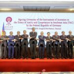 国际 巴林与德国签署《东南亚友好合作条约》(TAC)签署仪式 由 中时 - 2019年11月2日 (中华时报讯)记者晓港曼谷报道:2019年11月2日,巴林王国外交大臣谢赫·哈立德·本·艾哈迈德·本·穆罕默德·哈利法阁下和德意志联邦共和国驻印度尼西亚,东盟和东帝汶特命全权大使彼得·肖夫先生阁下在第35届东盟峰会及相关峰会上签署了《东南亚友好合作条约加入文书》。