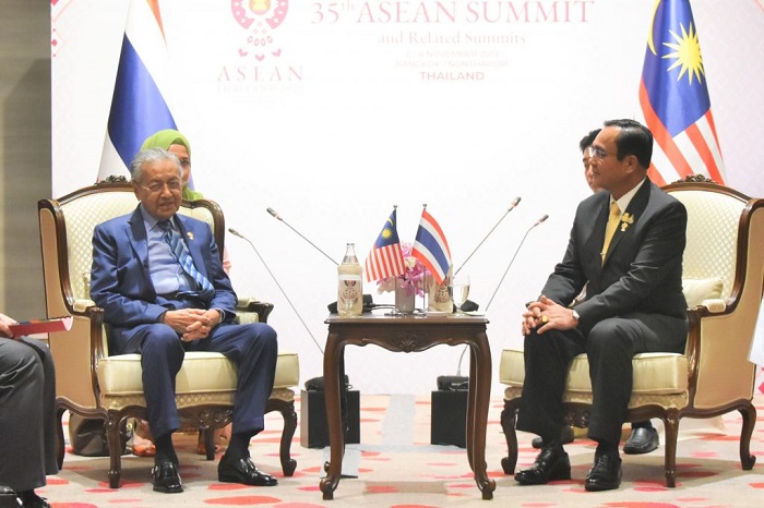 (中华时报讯)记者晓港曼谷报道:2019年11月2日,在第35届东盟峰会及相关峰会期间,泰国王国首相普赖特·尚奥查将军与马来西亚总理敦马哈迪·本·穆罕默德博士阁下举行了双边会议,加强双边关系并讨论在各个合作领域的进展,特别是在促进连通性方面,包括连接CIQ Sadao – ICQS Bukit Kayu Hitam的道路路线,沿泰马来西亚边境的发展,边境安全和双边贸易。