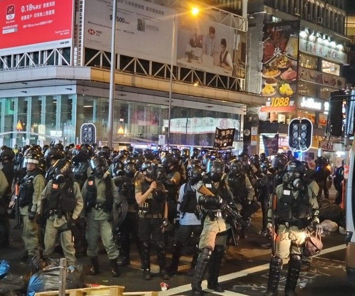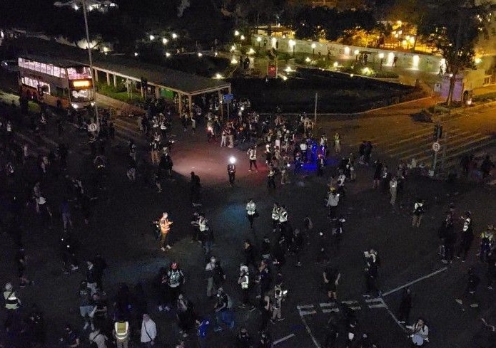 科大学生周梓乐死讯引爆全城大动乱!昨午起各区陆续有市民举行悼念活动,惟入黑后演变成示威冲突,铜锣湾、太古城、香港仔、太子、油麻地、旺角、沙田、屯门及元朗等区均有大批示威者集结,他们归咎于周的死亡与警方有关,有示威者堵路及破坏设施。其中在油麻地,有十多名便衣警员一度被大批示威者包围,警员向天开实弹枪示警以逼退示威者。另在亚皆老街近旺角街市发现一个可疑物品,警方今晨出动拆弹机械人处理。