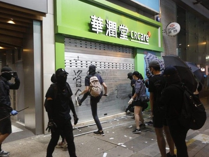 屡成示威者破坏目标的旺角站及太子站,昨傍晚开始聚集大批黑衣人,晚上约九时,他们分头行动,有人爬上旺角站出口破坏港铁标志,在外牆喷漆涂鸦,有人拆毁站内一个电话,现场一度冒出火光。晚上十时,在旺角站纵火的示威者试图破坏附近的华润堂,亦有人在亚皆老街一带设置路障及掘砖。
