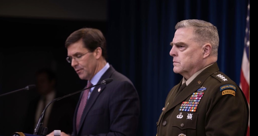 国防部长埃斯珀(Mark Esper)和美军参谋长联席会议主席米利(Mark Milley)星期五(2019年12月20日)一起见记者