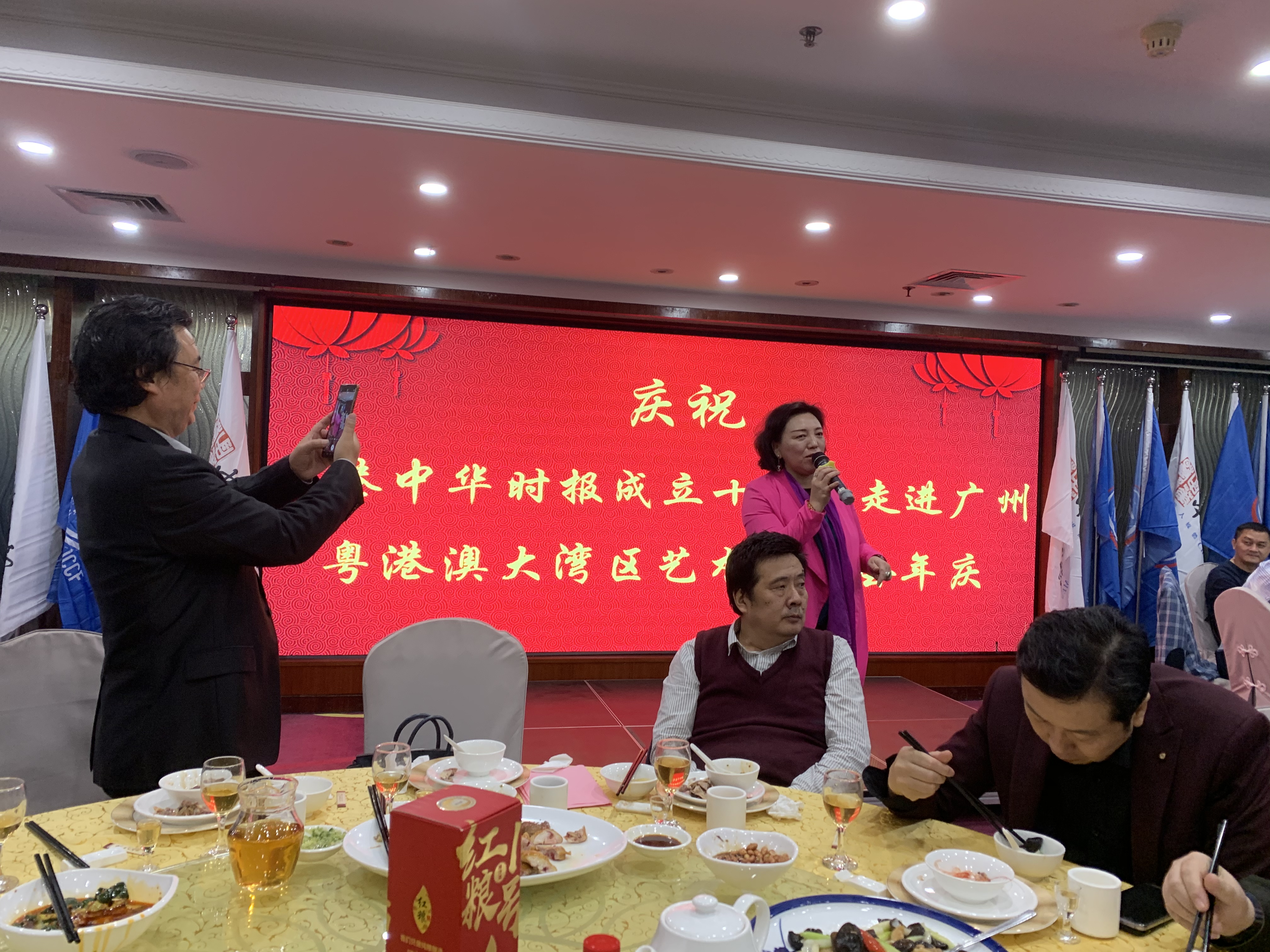(中华新闻通讯社讯)中华时报传媒集团联合相关单位于12月30日晩上在广州湖天宾馆举办“庆祝香港中华时报成立十周年走进广州”暨“粤港澳大湾区艺术联合会年庆”、“广州新世纪艺术研究院年会”晚宴,广东省、广州市相关部门和驻地媒体单位负责人、澳门法治报副社长刘水生、乌克兰友人、艺术家等共100多人出席了晚宴。