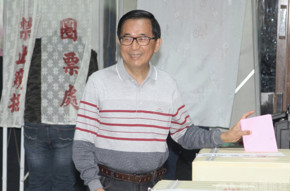 前总统陈水扁今天上午到设于台南市政府卫生局林森办公室的投开票所投票,呼吁选民要好好把握手中神圣一票,一定要出来投票。