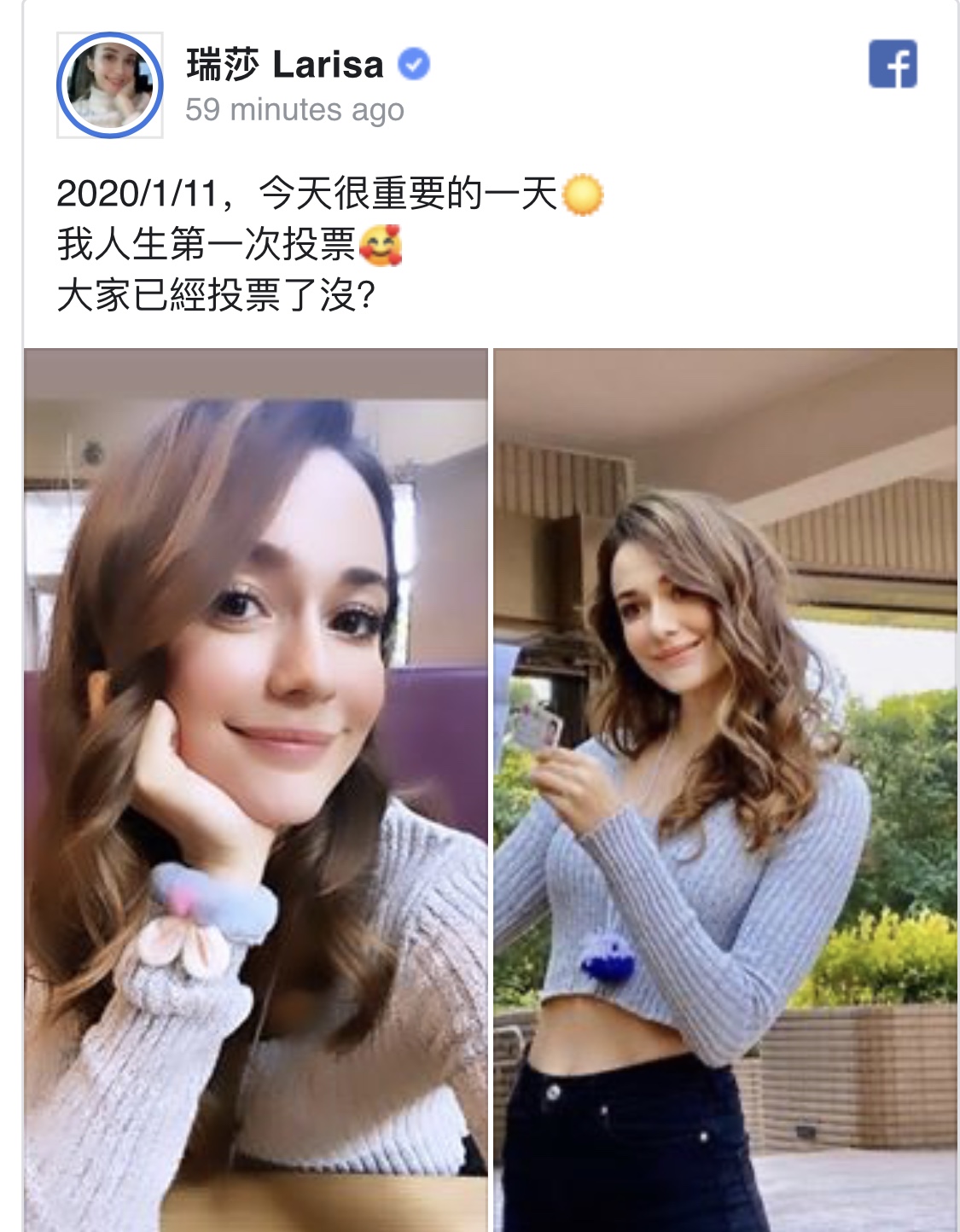 瑞莎是来自乌克兰的台湾模特和艺人,她已归化入籍台湾。这次大选是她人生的首次投票,吸引大批媒体采访。她对中华时报表示,她做功课、看政见到半夜三更,十分兴奋。