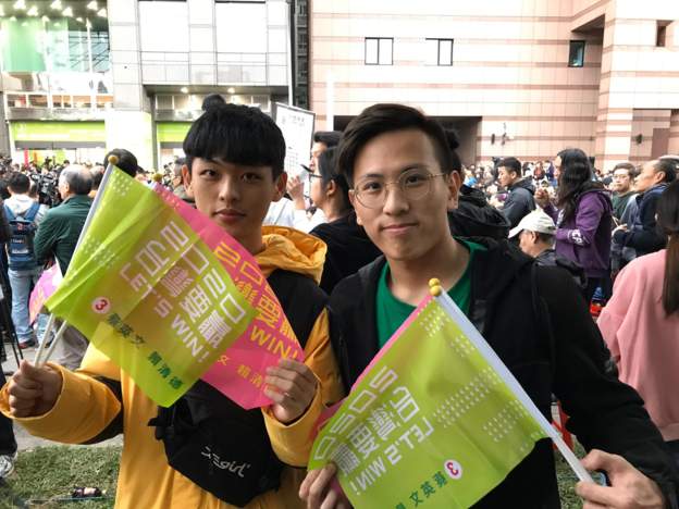 两位19岁正在念大学的李同学与宋同学跟记者表示,他们4点准时抵达竞选总部现场,当时已经挤满很多人,几乎进不去。