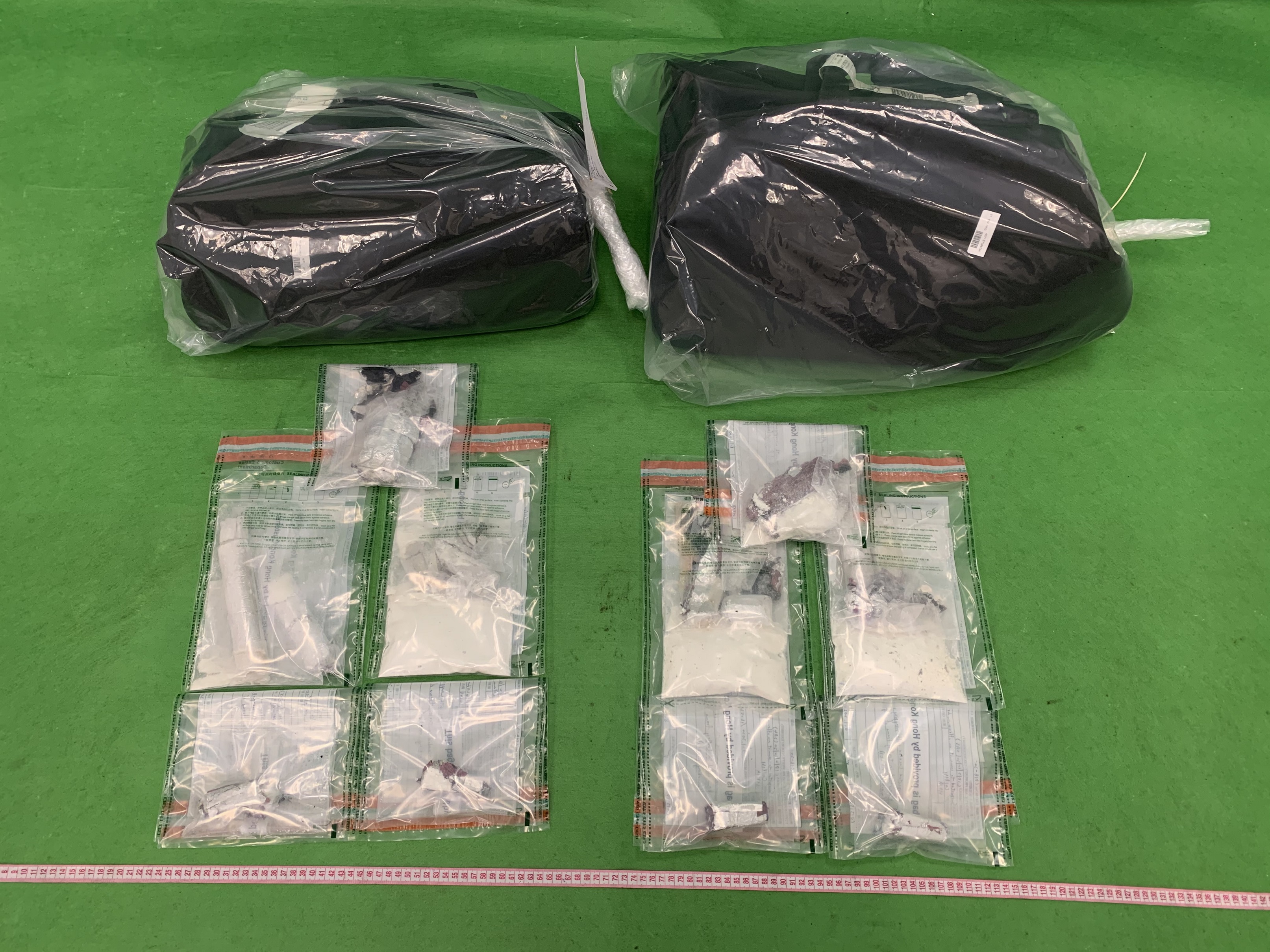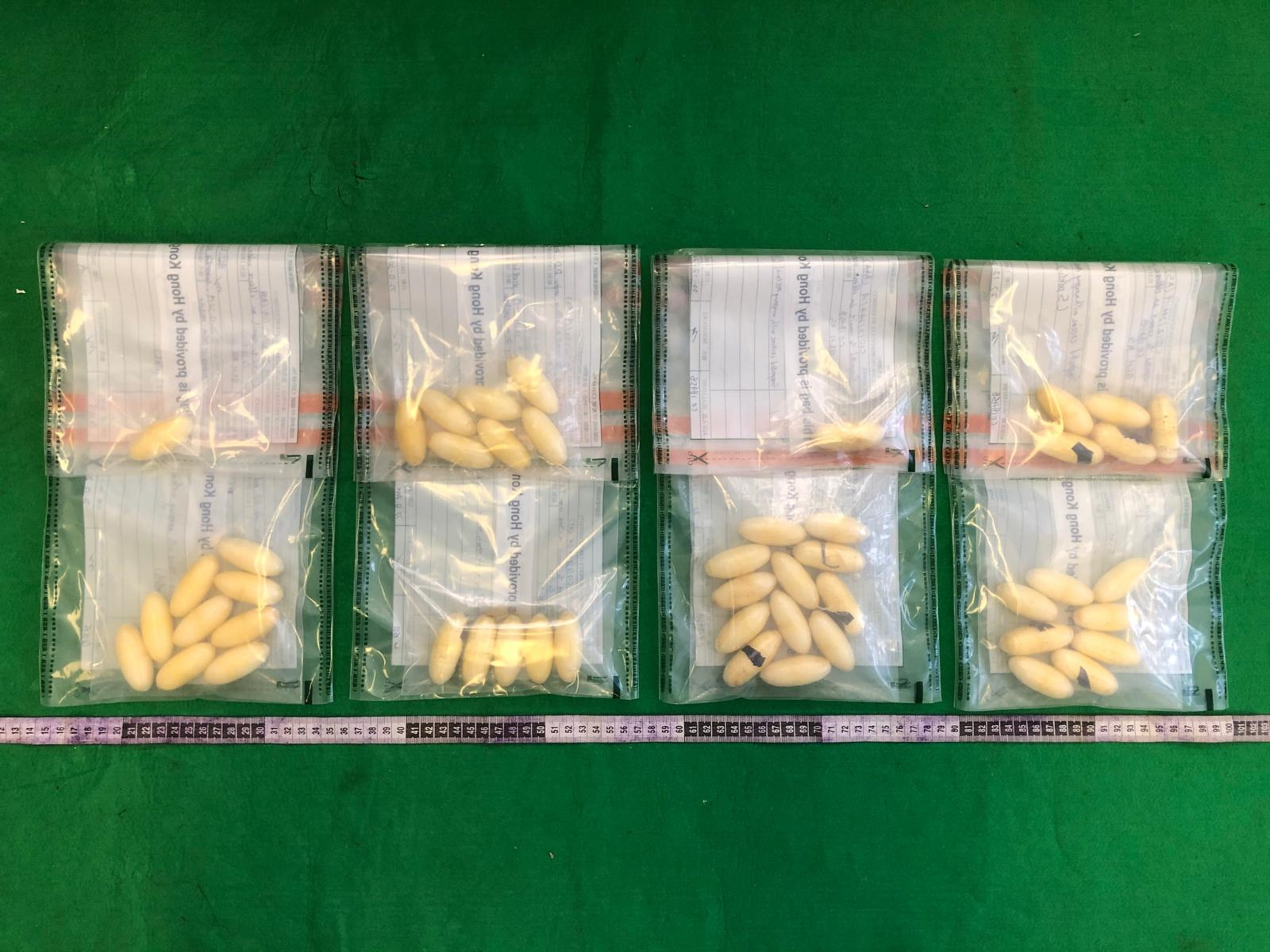 海关于其中一名旅客的两个寄舱行李箱的框架内检获约一公斤怀疑可卡因。另外两宗则为怀疑体内藏毒案件。两名旅客于医院从体内排出共约一点六九公斤怀疑可卡因。