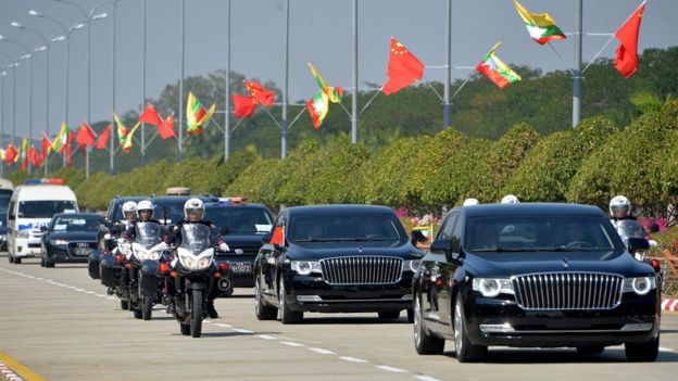 中国的官媒几天来竭力宣传两国之间的特殊关系,称两国是“亲戚”、“胞波”。习近平车队离开机场前往市区时,经过的沿途两侧悬挂有习近平的巨幅肖像和写有“中缅胞波友谊万古长青”等巨幅标语。