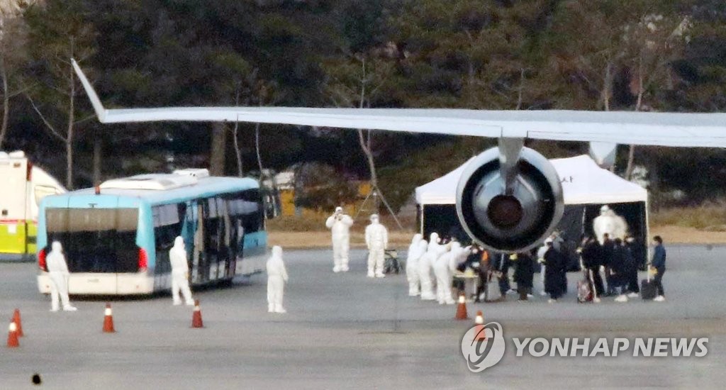 乘客中有12人在机内出现症状,被安排到位于2层的座位,与其他乘客拉开距离,有6人在抵达首尔金浦机场后接受检疫时被查出症状,他们被分别送往首尔国立中央医疗中心和中央大学医院。其余没有任何症状的350人按原计划乘坐政府安排的车辆前往隔离设施。250人抵达位于忠清南道牙山市的警察人才开发院,150人抵达忠清北道镇川郡的国家公务员人才开发院,他们将在那里隔离生活两周。