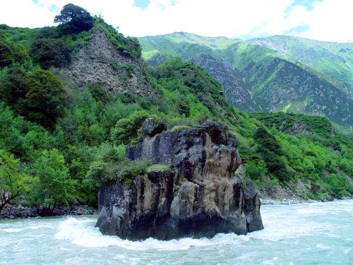 下午两点左右,旅游团抵达尼洋河上的中流砥柱景观再次进行休整。实际上所谓的中流砥柱景观,就是位于滚滚的尼洋河中矗立的一块巨石。可别小看这块巨石,它在清澈缓缓而流的尼洋河上,似一名阵守挺立的威武大将军,为流动的尼洋河平添了一道静与美的风景线。与此不远的地方,还在河畔建有一个观景亭,游人可以坐在亭中尽享尼洋河这一美景。