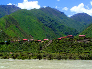 2007年7月31日清晨,记者一行抵达拉萨后的第二天,没有在拉萨市内游览,而是首先安排前往被誉为西藏江南的林芝地区观光。记者所在的团队乘旅游大巴驶离拉萨向林芝方向进发。上午九点四十分,首先抵达藏王松赞干布的出生地做短暂休整。