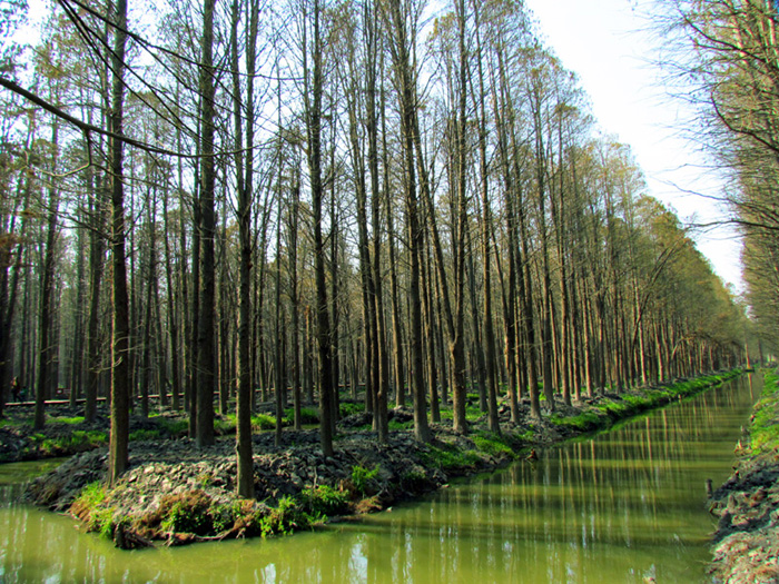 可能是气候原因使然,这里眼下还不是花开最盛的时节,虽说不少的地方已变成了金黄色,但仍有大片的区域处于黄绿之间,这也越发使花海变得更富有层次。车友们江苏自驾之旅的最后一站是前往兴化李中水上森林奇观。李中水上森林公园始建于80年代初期,森林面积1050亩,水面面积500亩,是江苏省最大的水上森林,景区就在“千岛菜花”附近。