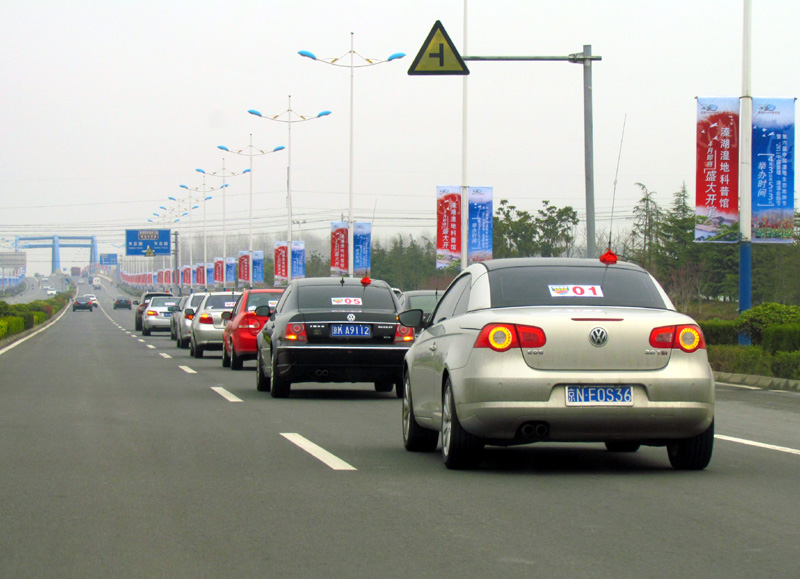 车队驶离泰州(摄影:冯赣勇)