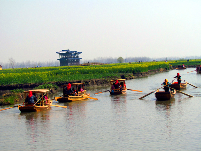 江苏兴化的水上油菜花海享有盛名,每年的清明这里都会举行盛大的千岛油菜花旅游节。2011年4月2日,记者应邀随北京爱车阳光汽车俱乐部组织的一支自驾车队前往江苏,进行了一次为期四天,难忘的清明踏春采风之旅。