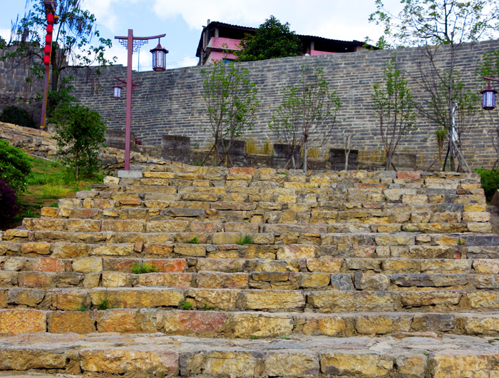 平越驿站对面就是福泉古城的威武楼,只见长长的古城墙中的城楼蔚为壮观。于是放下行囊,顾不上劳乏向着古城楼的方向漫步而行。初次来到这座古城,眼前的古香古色的建筑群,山清水秀的自然景致,穿着道家服饰行走在街头的道人,小桥流水等景观,一切都感到很新鲜。