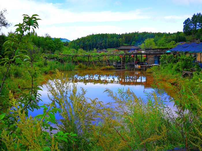 在夏末秋初时节来此,除了古朴的屋舍特色外略显单调。但是人们可以感觉到,如果冬季到此一游,那白雪皑皑的木屋村冬景一定会更美!此时,站在坡上远远的望见长白山,袅袅炊烟升起,浓浓的东北风情中尽显一派质朴的乡村景致。