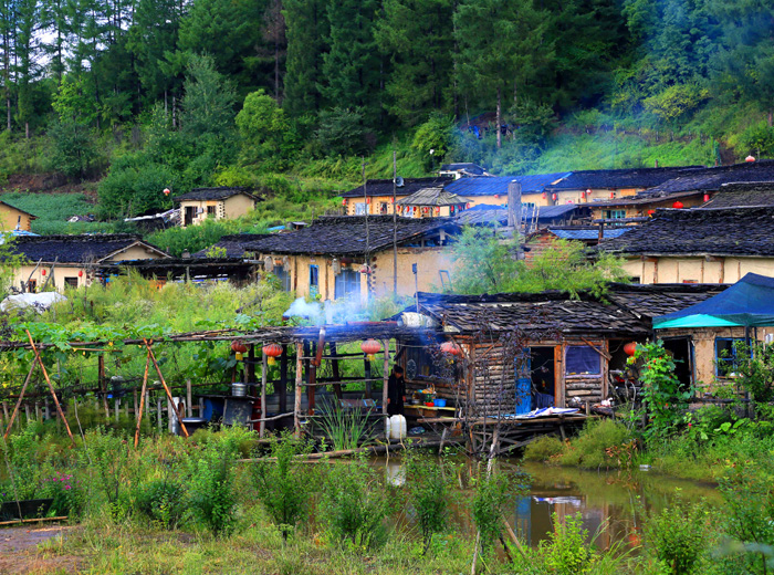 他打开话匣子滔滔不绝地向记者们介绍说,全家子孙三代6口人,儿子在漫江镇里工作,本来全家可搬到镇里住楼,可老两口偏偏舍不得离开这里,进楼也不习惯,这木屋木瓦泥墙,木是黄花松木,泥是黄泥发暖,就地取材,冬暖夏凉,住了几代人了,三五年串一回木瓦,翻翻新,住着很舒坦。