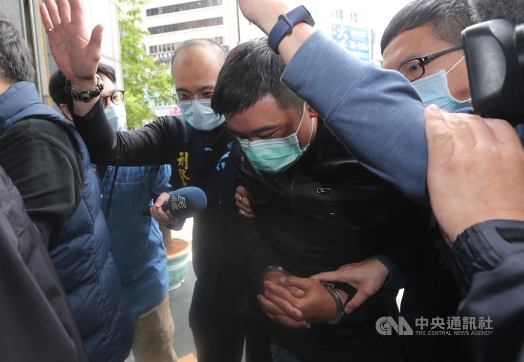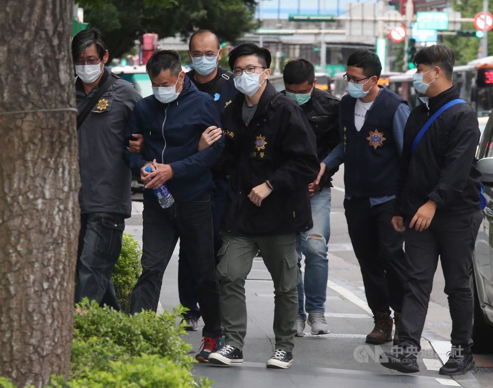 香港銅鑼灣書店前店長林榮基21日遭人潑漆,北市警方組專案小組全力偵辦,22日凌晨在高雄市查獲潑漆犯嫌曾男和指揮犯案的鄭男到案,另持續追緝一名在逃共犯中。上午將兩名嫌犯帶回台北市警察局中山分局偵辦。中央社記者張新偉攝