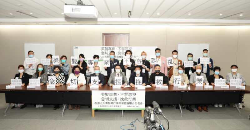 2020新冠肺炎疫情影響市道百業蕭條,很多行業獲得政府的防疫抗疫基金的資助,美髮業因為行業的範圍涉及產品及服務,卻未能得到任何適切的援助,因為行業運作的特色,從業員的職業身份也得不到認定。尤其第二期防疫抗疫基金,對於美髮業,特別是小型店鋪未能受惠於『救企業』、『保就業』抗疫救市計畫,對行業士氣造成沉重的打擊,一眾美髪業行業商會協會 (涵蓋香港美髮界的產業鍊包括大中小髮廊、髮型師、從事美髮工作、教育及產品商) 特招開聯合記者會,就上述情况向政府及各界更充份地表述,並提出八大建議及聯合聲明。
