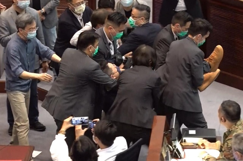 民主派议员斥,立法会保安动用警察的武力水平制服议员,冲突中多人受伤