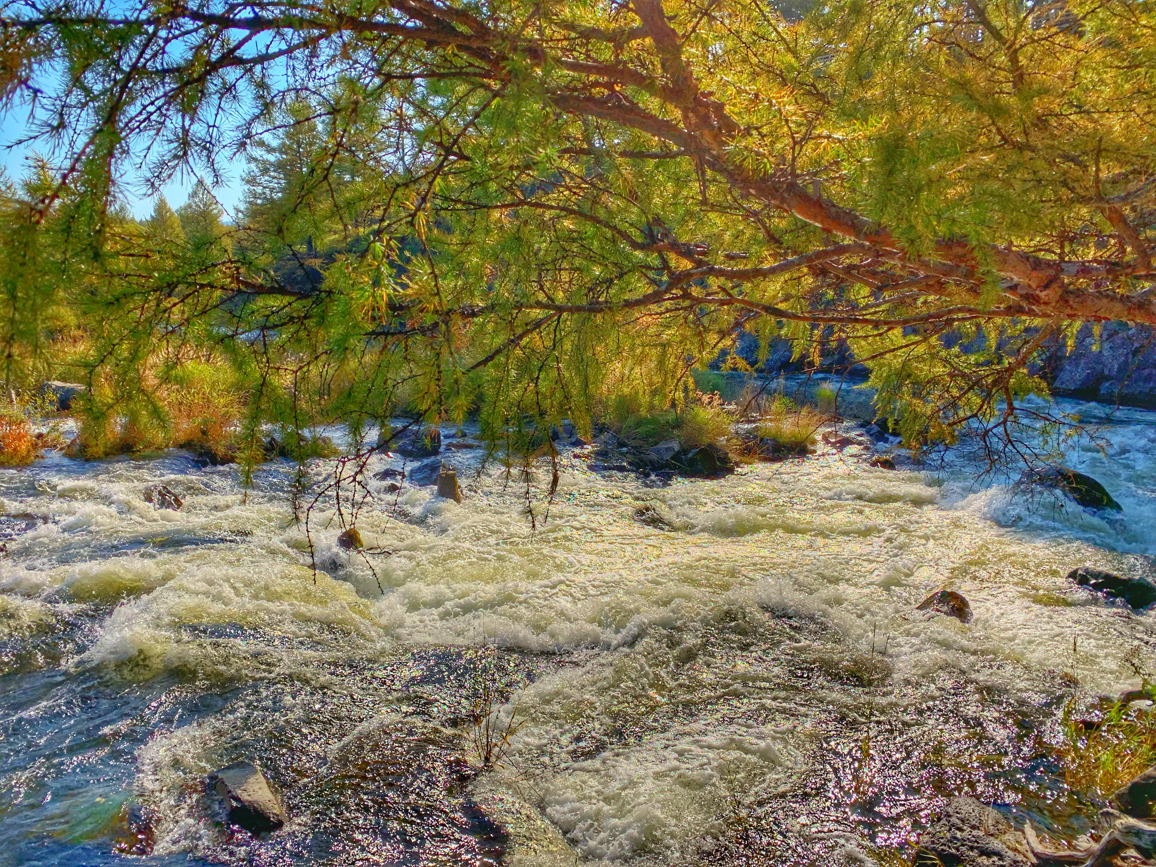 我们也顺便去了石塘林,这里落叶松枝繁叶茂,高山柏遍地延伸,金星梅一片金黄,石与林相依,清流时隐时现,处处景色盎然。