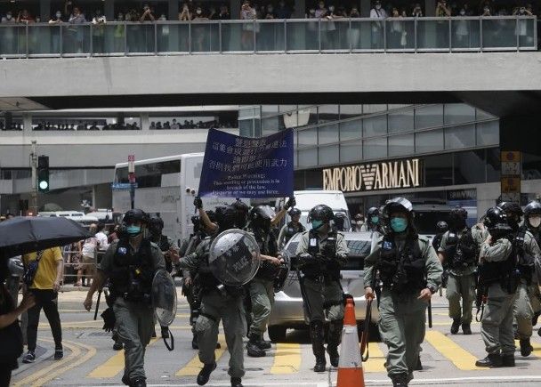 (中華新聞通訊社/中華時報香港訊)港府計劃今日(27日)於立法會大會恢復《國歌條例草案》二讀辯論,有網民今日號召多區堵路,反對港區國安法及國歌法,警方加強警力佈防。其中在中環有市民聚集,期間有人行出馬路,警方一度舉起藍旗警告,並發射多輪胡椒彈球槍驅趕。消息指,警方至今於多區共拘捕約300人。