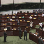 立法會會議期間,民主黨議員許智峯手持一袋腐爛植物,走近主席台,被保安攔截,該棵腐爛植物倒瀉在地,立法會暫停會議,立法會秘書處報警,警員及消防員到場。