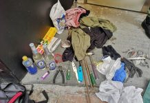 事發後,保安人員用布蓋著爛泥,並噴灑消毒噴劑,有清潔人員到場清理。