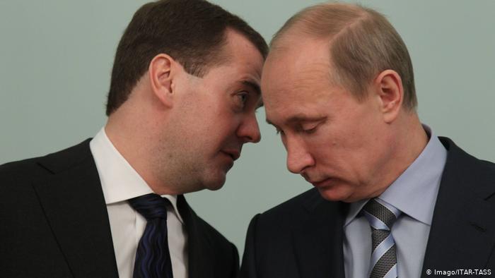 “双套车”式民主 很多人相信,梅德韦杰夫只是普京的傀儡。2012年3月,普京再次当选总统,并于同年5月开始第三任总统生涯。梅德韦杰夫则被任命为总理。这种“双套车”式的轮流坐庄引起了广泛批评。2018年3月18日,普京第四次当选俄罗斯总统。因宪法修改,此次任期为六年。选举中反对派受到打压,投票也受到舞弊指控。