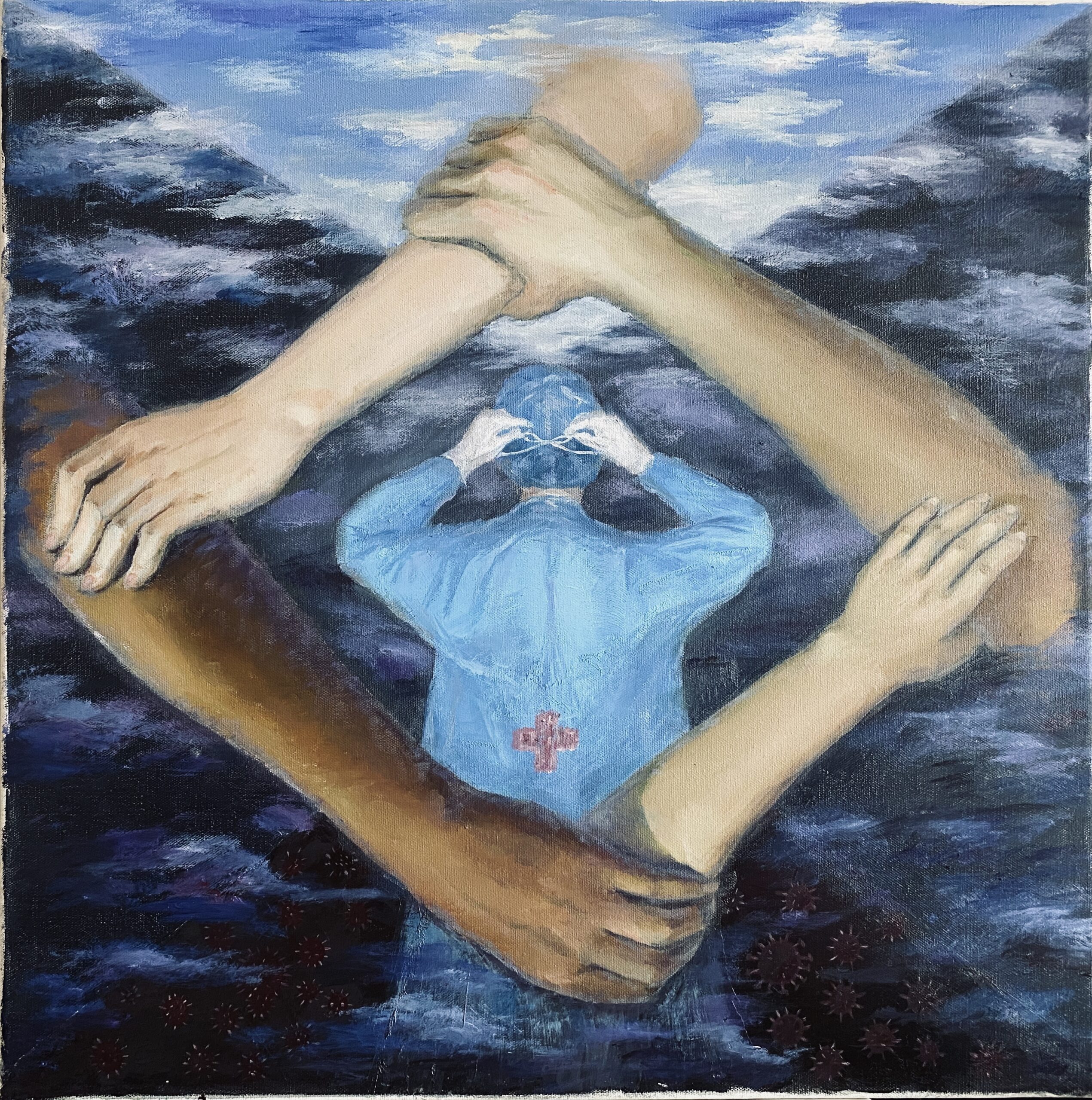作品说明:在此次抗击疫情期间,最美“逆行者”——医护人员,面对未知的疫情,他们甘于奉献,勇担使命。而在他们的身后,有全国人民、男女老少的团结一心,用另一种方式与疫情抗争。