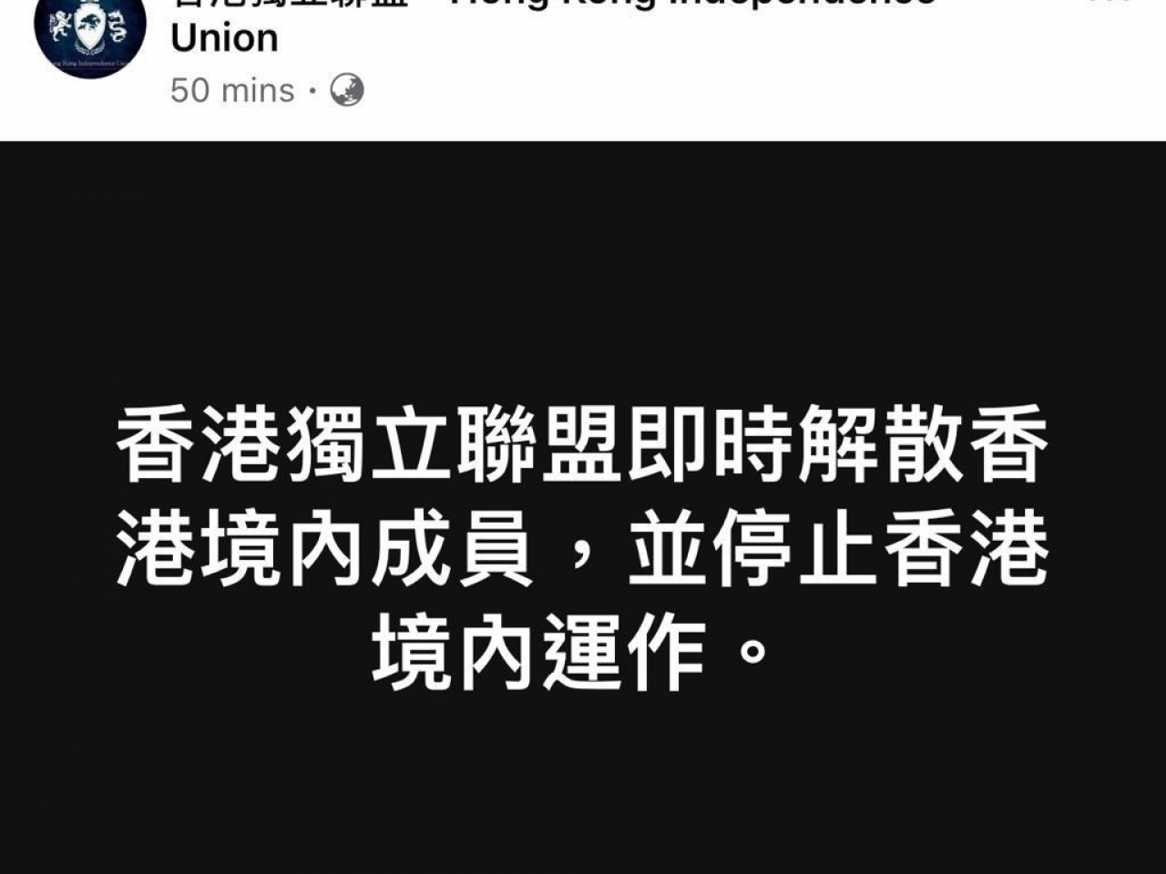 香港独立联盟在社交网站公布,即时解散香港境内成员并停止香港境内运作。联盟召集人陈家驹早前已在在社交网站发文,承认已经离开香港。陈家驹被控去年6月10日在湾仔参与非法集结,获准保释候审,期间每周要到警署报到。