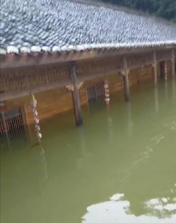 中华时报记者王之发自鄱阳县赣皖交界处的莲花山国家森林公园照片,显示该公园受灾严重成一片汪洋。