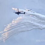 漢光演習「三軍聯合反登陸作戰」操演16日上午在台中甲南海灘舉行,圖為AH-64阿帕契攻擊直升機施放熱焰彈。中央社記者王飛華攝 109年7月16日