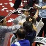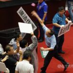 立法院會17日進行監察院人事同意權案投票,國民黨立委丟水球、灑水企圖阻擋開票,並與民進黨立委爆發肢體衝突。中央社記者徐肇昌攝 109年7月17日