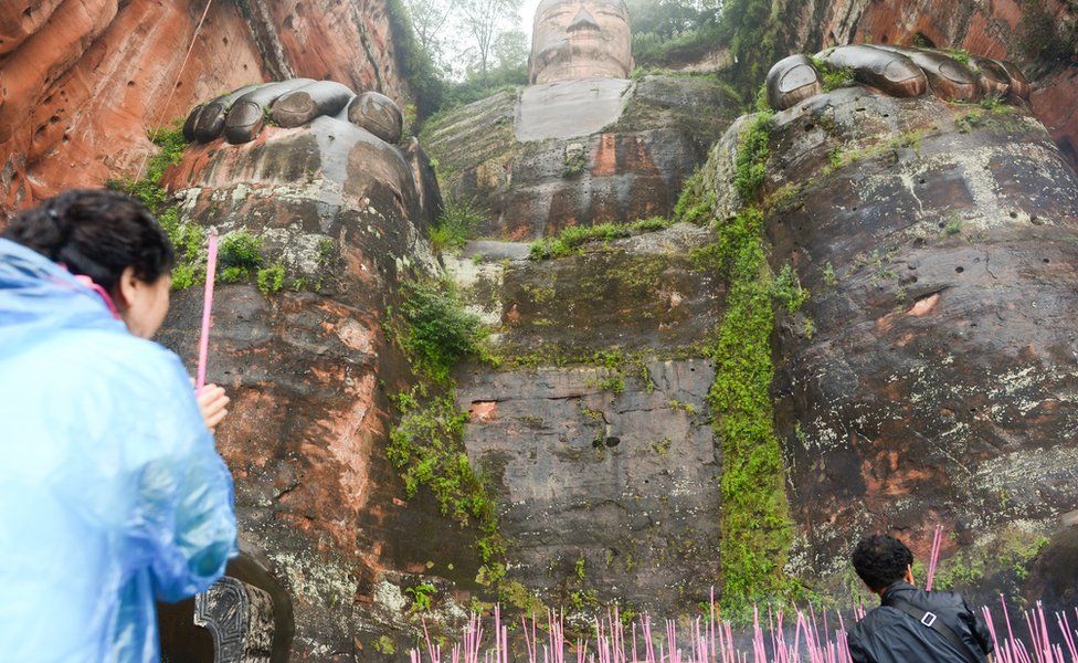 这座71米高的石像是联合国教科文组织世界遗产,于公元8世纪左右在四川省乐山市附近的一处岩石表面雕刻而成的。