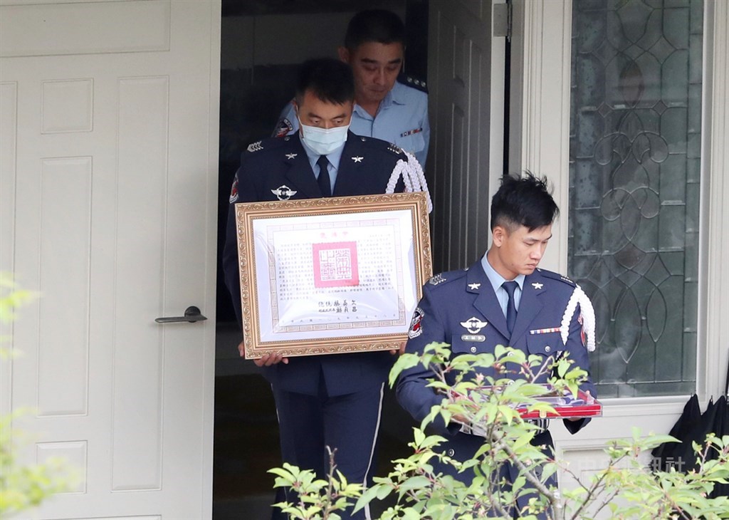 總統蔡英文率副總統賴清德、總統府秘書長李大維、總統府副秘書長李俊俋、內政部長徐國勇以及國防部相關將領等陪禮者迎靈。