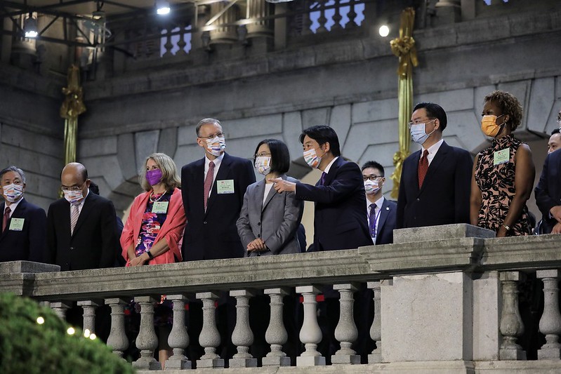 蔡英文總統昨(10)日晚間偕同賴清德副總統出席在臺北賓館舉辦的「中華民國109年國慶酒會」,與現場各國駐臺使節、駐臺機構及國際組織代表共同慶賀中華民國109年國慶。