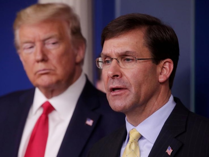特朗普周一(9日)在推特上说;“马克·埃斯珀已被解除职务,米勒(Christopher Miller)将出任代国防部长,即时生效。