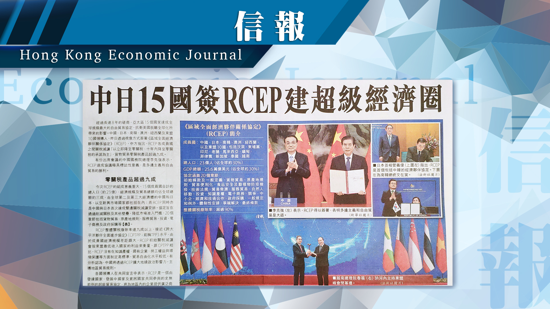 《信報》﹣ 中日15國簽RCEP建超級經濟圈
