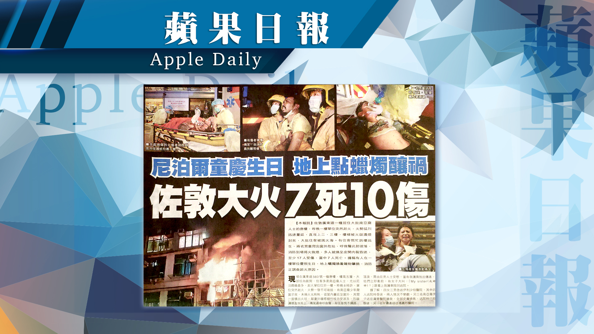 《蘋果日報》﹣ 尼泊爾童慶生日 地上點蠟燭釀禍 佐敦大火7死10傷