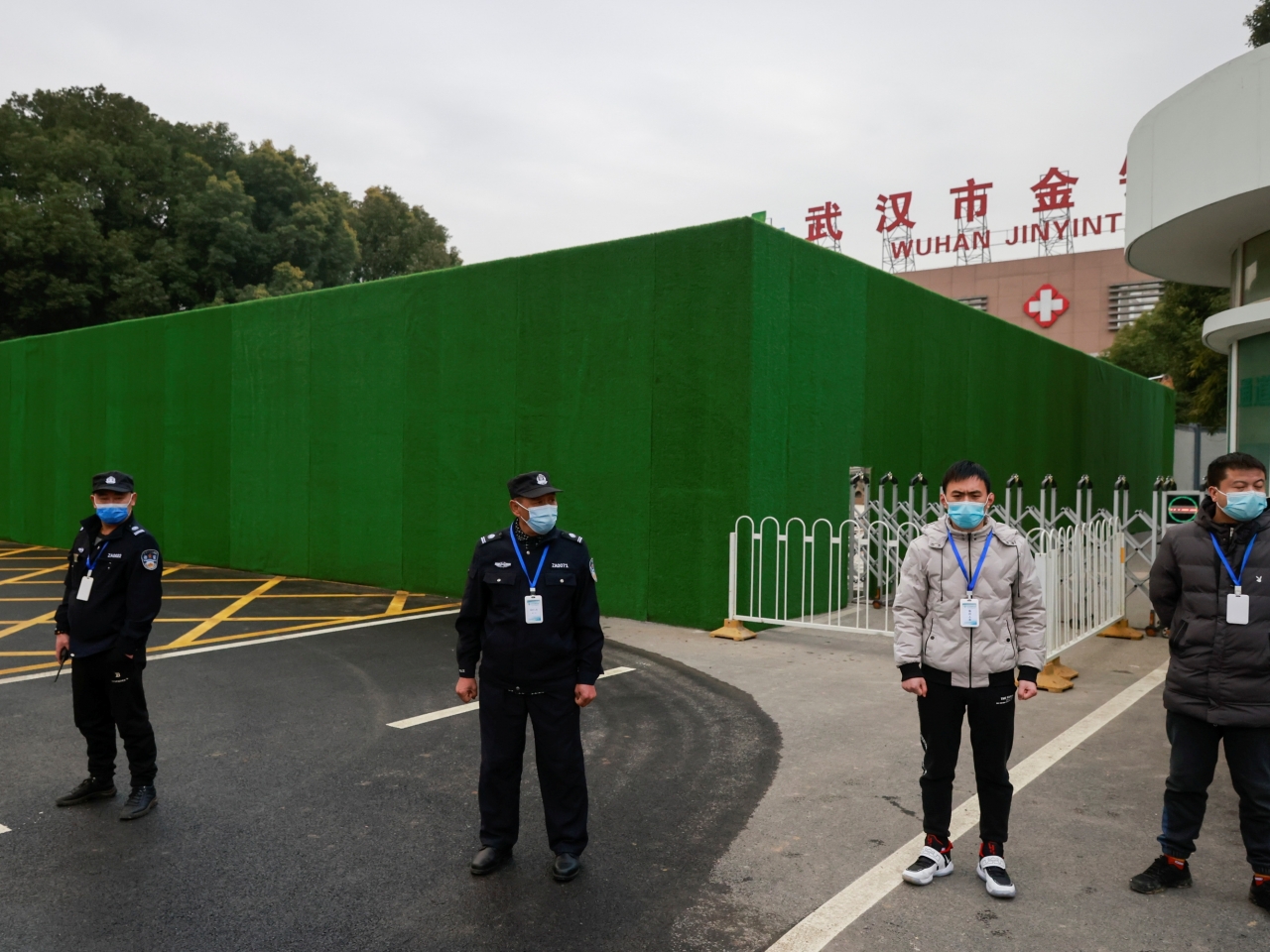 专家们在离开金银潭医院的时候没有对媒体讲话。记者们被挡在与专家们有一定距离的地方。