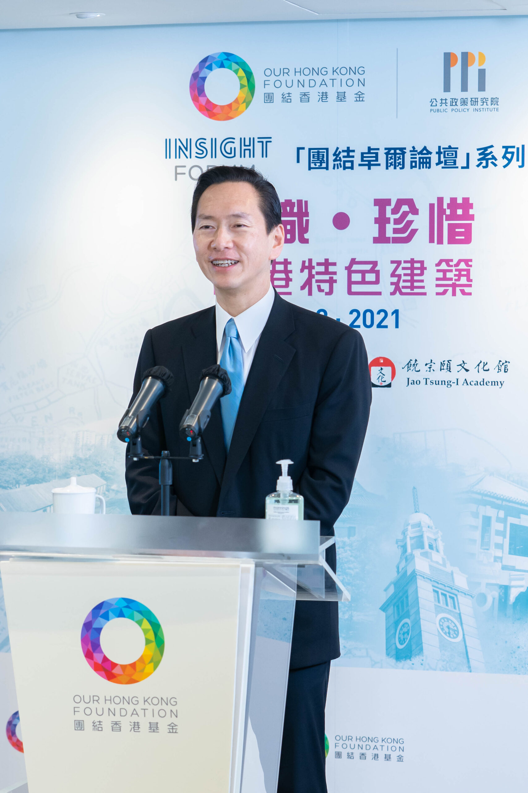 香港特區政府行政會議召集人、亞洲金融集團總裁及亞洲保險主席陳智思先生表示,保護歷史建築物最重要的是明白建築物背後的歷史,透過認識歷史,認識香港。他認為,「『為保育而保育』並不困難,如何在發展及保育中取得平衡,滿足所有持分者的利益,而且合理使用公帑才是最困難。」