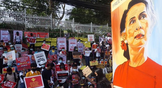示威群众齐聚仰光要求缅甸军方释放昂山素季。