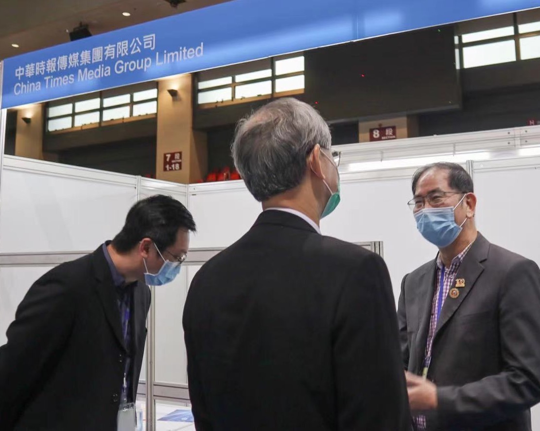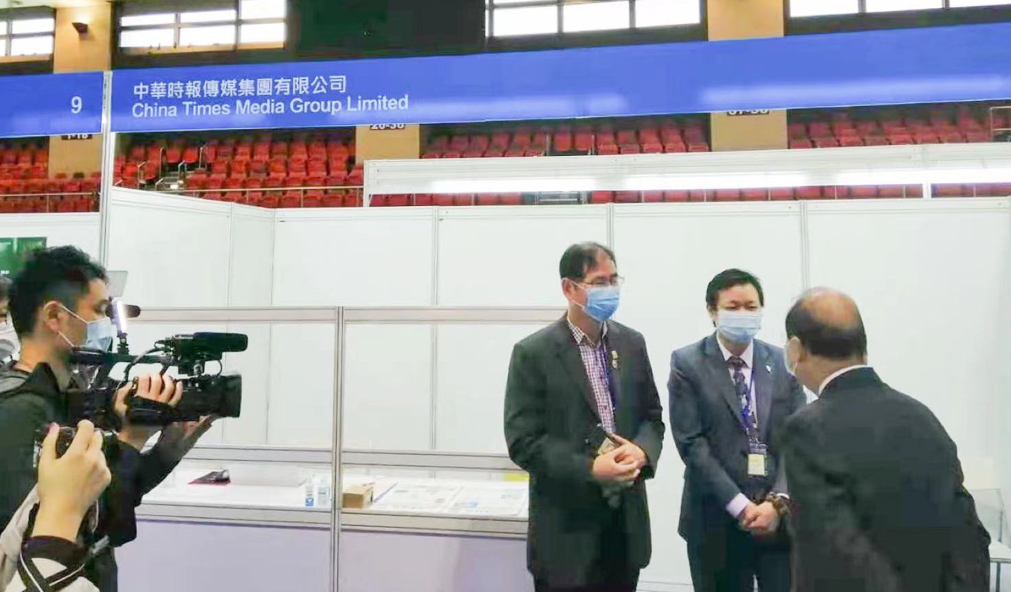 香港特區政府勞工及福利局局長羅致光博士在中華時報傳媒集團設置櫃位與中華時報記者交流
