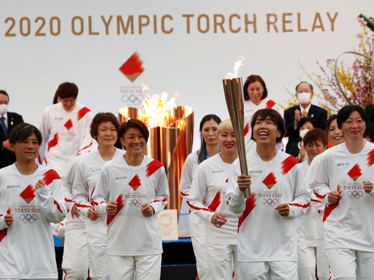 日本正式展開東京奧運火炬傳遞活動,受新型肺炎疫情影響,儀式不開放給民眾參與,只有小部分獲邀嘉賓出席。啟動儀式在10年前311大地震後,發生核事故的福島縣開始,當年協助日本贏得女足世界盃冠軍的16名成員,擔任第一棒火炬手。東京奧組委主席橋本聖子說,過去一年全球經歷艱難時期,但奧運聖火的小火焰無失去希望,好像準備開花的櫻花花蕾一樣,等待這一日的來臨,相信活動會為日本及全球人民帶來希望。日本首相菅義偉在東京表示,政府將會與東京都政府及國際奧委會合作,舉辦一場安全的奧運,誓言要竭盡全力採取防疫措施。為期121日的火炬傳遞,將於全國47個都道府縣進行,大約1萬名來自各界的火炬手參與,每位火炬手將舉起火炬跑大約200米。因應疫情,官員呼籲民眾不要在火炬傳遞路線沿途聚集,一旦人數太多,可能取消個別路段的聖火傳遞。