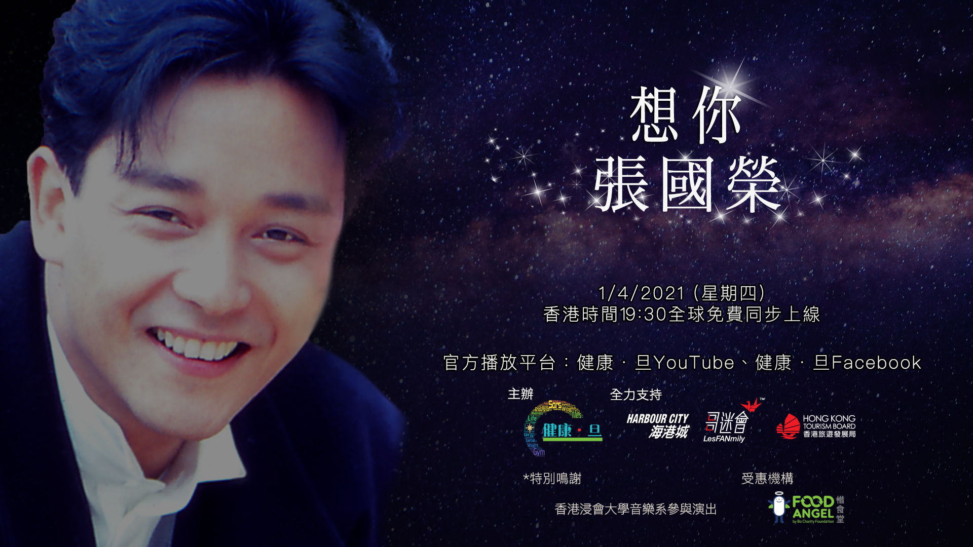 (中華時報/華聞社 綜合報導)(2021年4月9日,香港)由「健康·旦」主辦之《想你 張國榮》網上演唱會透過全球多個地區,共94個平台供全球觀眾收看,節目共錄得約2000萬觀看人數。當中「健康·旦」YouTube頻道首20小時之總觀看人數超過100萬;全球Facebook串流播放瀏覽量達100萬;收看本地免費電視播放的人次合共接近200萬;騰訊QQ及旗下音樂平台之直播觀看人數超過1200萬。