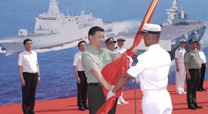 (中华新闻通讯社海南讯)上周五(4月23日)是中国军方在海军成立纪念日,罕见的集中交接入列了3艘海军主战舰艇,分别为最新型的长征18号战略核潜艇,大型驱逐舰大连舰和首艘075型两栖攻击舰海南舰。一日之内下水舰艇排水量超过许多国家海军舰队总和,“新华社解放军分社”称在生日这天“下饺子”。