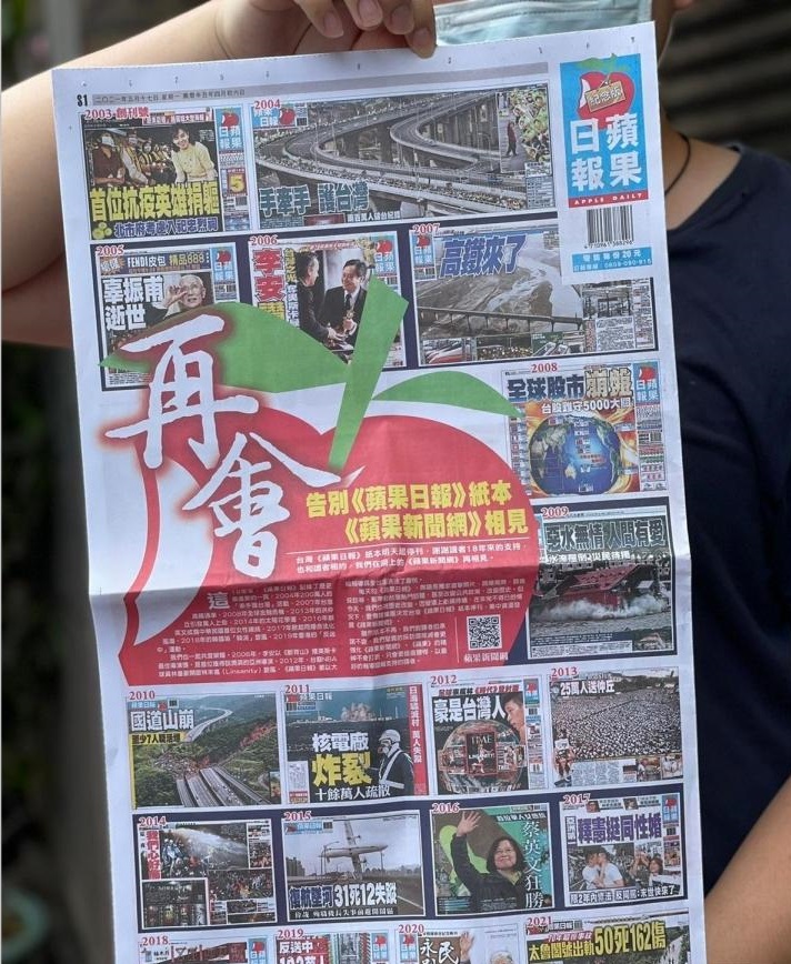 台灣「蘋果日報」上星期五表示,由於不堪營運虧損,廣告流失,加上香港政局惡化,新聞自由被打壓,本月18日起停止紙本發行,集中資源發展網站「蘋果新聞網」。