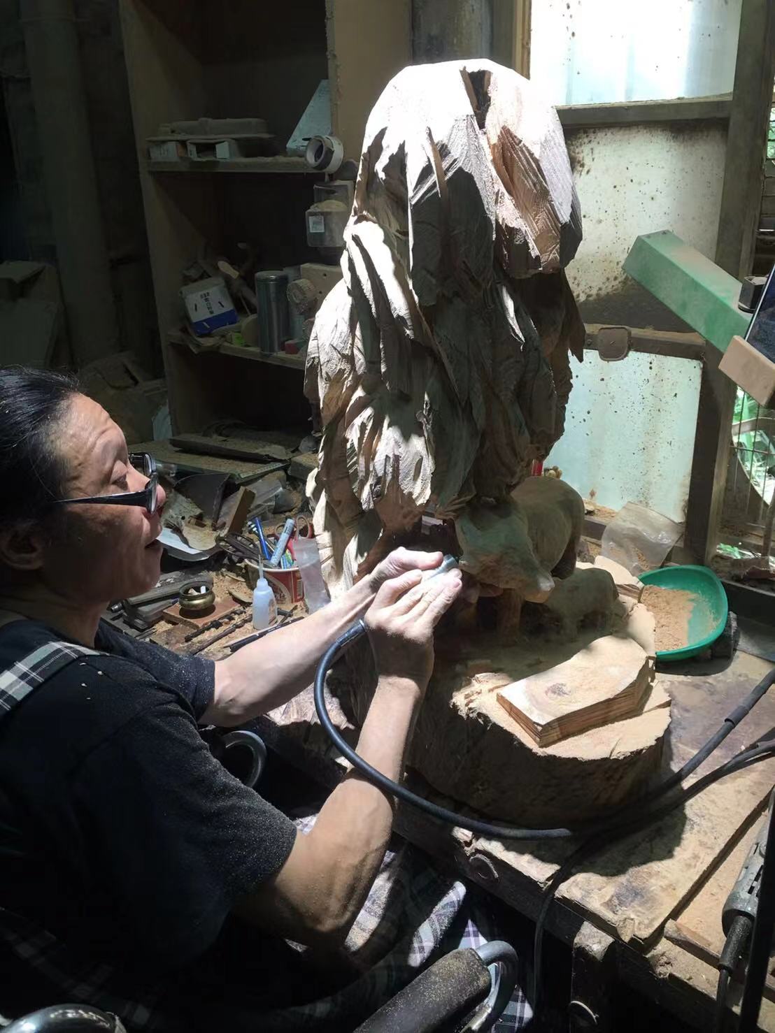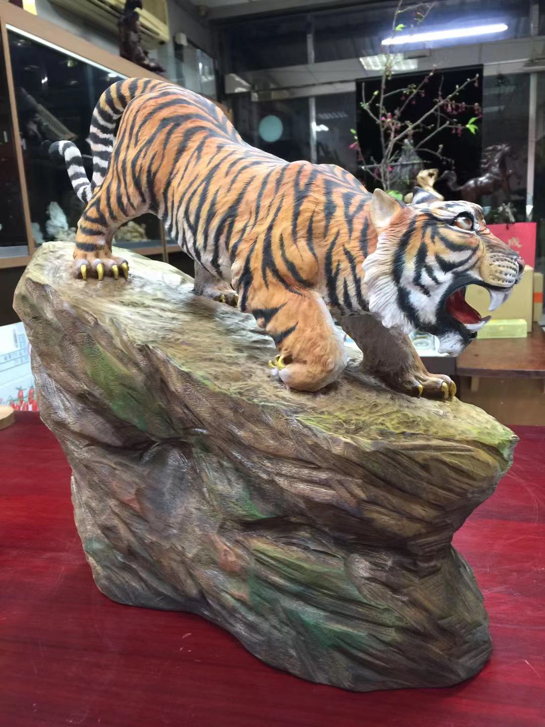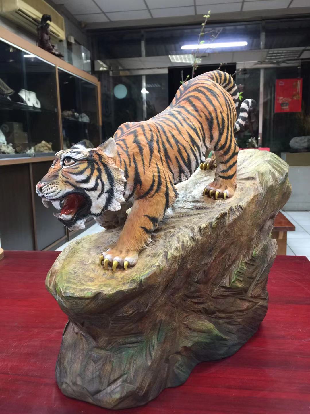 這件木雕「虎爺」作品,以台灣樟木雕刻而成,共用了7個工作天完成。