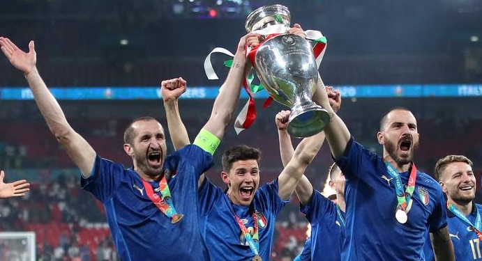 (中華時報/華聞社7月12日綜合報導)2021年欧洲杯在伦敦温布利球场落幕,意大利和英格兰在常规时间和加时赛战成1比1,意大利在点球大战(PK大赛)中以3比2击败对手,睽违53年再次拿下冠军,更缔造15连胜,再度刷新队史纪录。